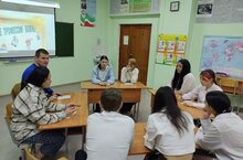 В ходе занятия учащиеся говорили о таких ценностях, как жизнь, достоинство, патриотизм, высокие нравственные идеалы, историческая память и преемственность поколений.