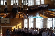 Сегодня в школе состоялась спортивная викторина "Школа здорового образа жизни". Ребята были разделены на две команды, где впоследствии выявилась команда победителей. Воспитанники с удовольствием отвечали на интеллектуальные вопросы и показывали свои умения и таланты в спорте. Все участники спортивной викторины были награждены поощрительными призами.