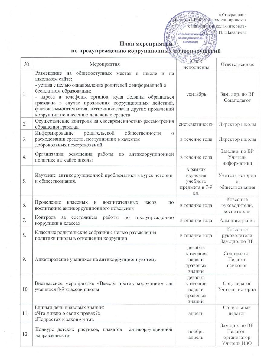 /План работы по предупреждению коррупционных правонарушений 2020-2021 учебный год.jpg