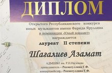 Ученик 3 класса МБОУ "Новокашировская СОШ" Шагалиев Азамат лауреат 2 степени Республиканского фестиваля юных музыкантов им.Ф.Яруллина (Руководитель: Рахматуллина Г.Ф) 09.03.2019