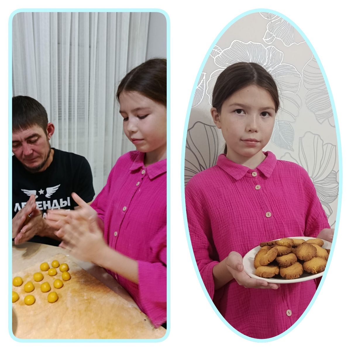 Ученица 4 класса - Гиздатуллина Самира вместе с папой готовят полюбившиеся им сладость