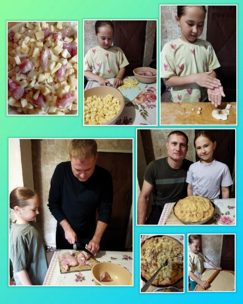 Ученица 3 класса -Фаттахова Айсылу вместе с папой готовят праздничный бәлеш