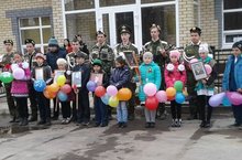 Безнең мәктәп укучылары Бөек Җиңүгә багышланган митингта.