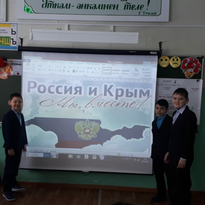 С 16 по 18 марта в школе были проведены классные часы, посвященные дню воссоединения Крыма с Россией. Ученики посмотрели видеоролик "Крым - Наш", познакомились историческими, культурными местами и достопримечательностями Крыма.