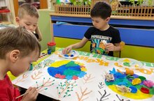 В рамках празднования Дня космонавтики в группах ДОУ прошли познавательные занятия «Путешествие к звёздам». Дошколята познакомились с планетами солнечной системы, с историей возникновения праздника и историей развития космонавтики. Ребята с удовольствием слушали рассказы о первых космонавтах - собаках, о героях космоса, о том, что космонавты берут с собой в космос и чем питаются, рассматривали иллюстрации с изображением планет и отгадывали загадки. Знания, полученные на занятиях, дети закрепили в своих творческих работах и рисунках. -