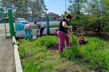 В МБДОУ № 62 «Тирэк» продолжается неделя «Преображение» по очистке и благоустройству территории ДОУ и прилегающей территории. В акции приняли участие 12 взрослых и 48 детей. -