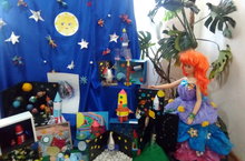 С воспитанниками в течении тематической недели проведены беседы и образовательная деятельность, игры о космосе, космических полетах, космонавтах. Воспитатели подготовили презентации «Русский космос», «Почему солнце светит днем, а звезды ночью». В холле детского сада была оформлена очень красочная выставка «Космические просторы». -