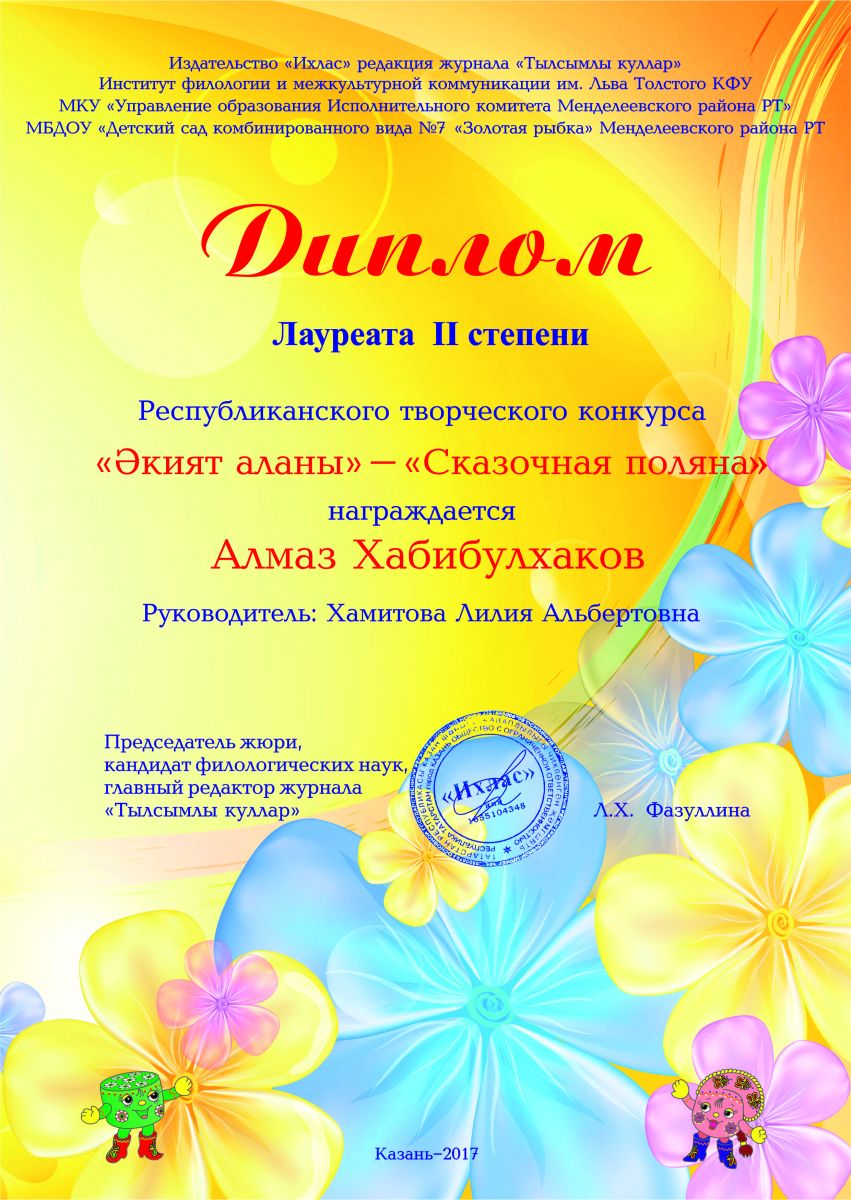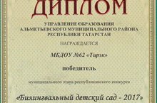Наш детский сад стал победителем муниципального этапа республиканского конкурса "Билингвальный детский сад - 2017". Поздравляем всех педагогов детского сада!!!
