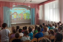 В четверг дети всех возрастных групп посмотрели познавательные мультфильмы о безопасности на дорогах с любимыми и известными персонажами "Смешарики" и "Дозорные дорог"