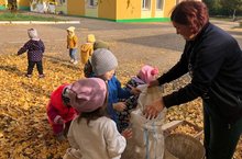 Дети с воодушевлением и энтузиазмом помогали взрослым наводить порядок не только на участке для прогулок, но и на территории детского сада. С большим удовольствием помогали дворнику собирать листья в кучи граблями и убирать их в мешки.