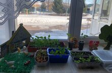 В целях экологического воспитания, во всех группах нашего детского сада в начале марта появились небольшие огородики. В них представлено видовое разнообразие овощных культур (лук, петрушка, помидоры, фасоль, горох), а также цветы: астра, бархатцы, петунья.