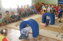 В нашем детском саду в средней, старшей и подготовительной группах прошли "Веселые старты". Из-за дождливой погоды мероприятие прошло в музыкальном зале, но это не омрачило настроение детей. Они с удовольствием приняли участие в этом мероприятии. Их ожидали игры с мячами, эстафеты с обручами, подлезание по дугу и еще много-много различных конкурсов.