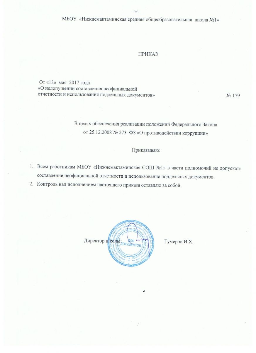Приказ «О недопущении составления неофициальной отчетности и использования поддельных документов».