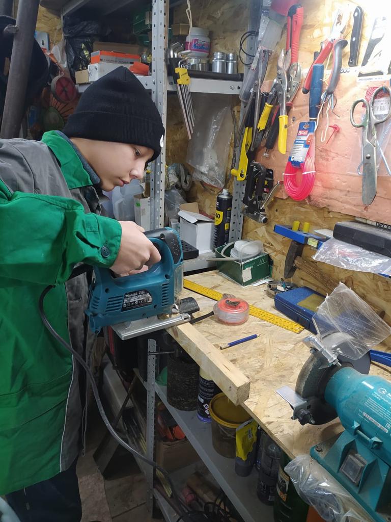 Наши ребята с интерном осваивают технологию изготовления изделий из бросового материала. -