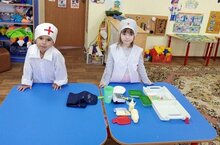 Знакомство с профессией медсестры через ролевые игры. Сегодня наши детки работали врачами и медицинскими сестрами в импровизированной больнице. Вылечили всех "больных".