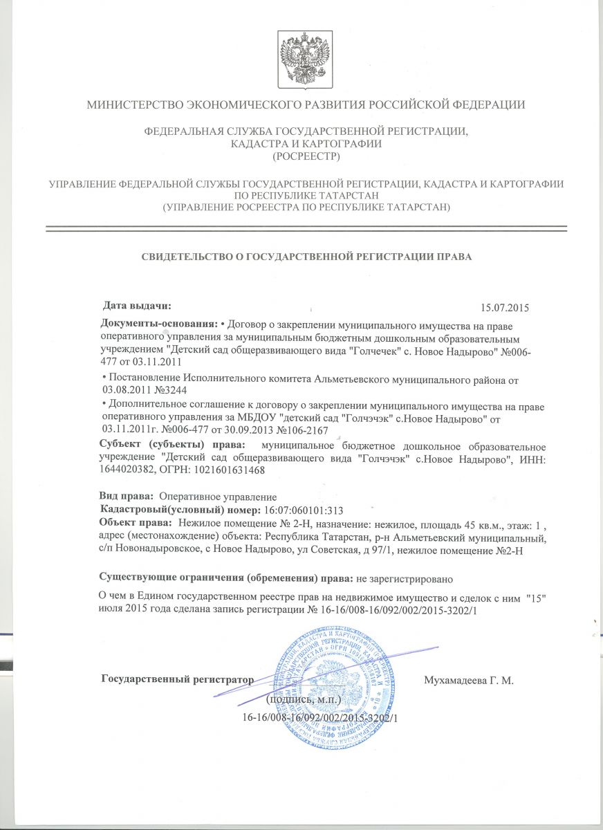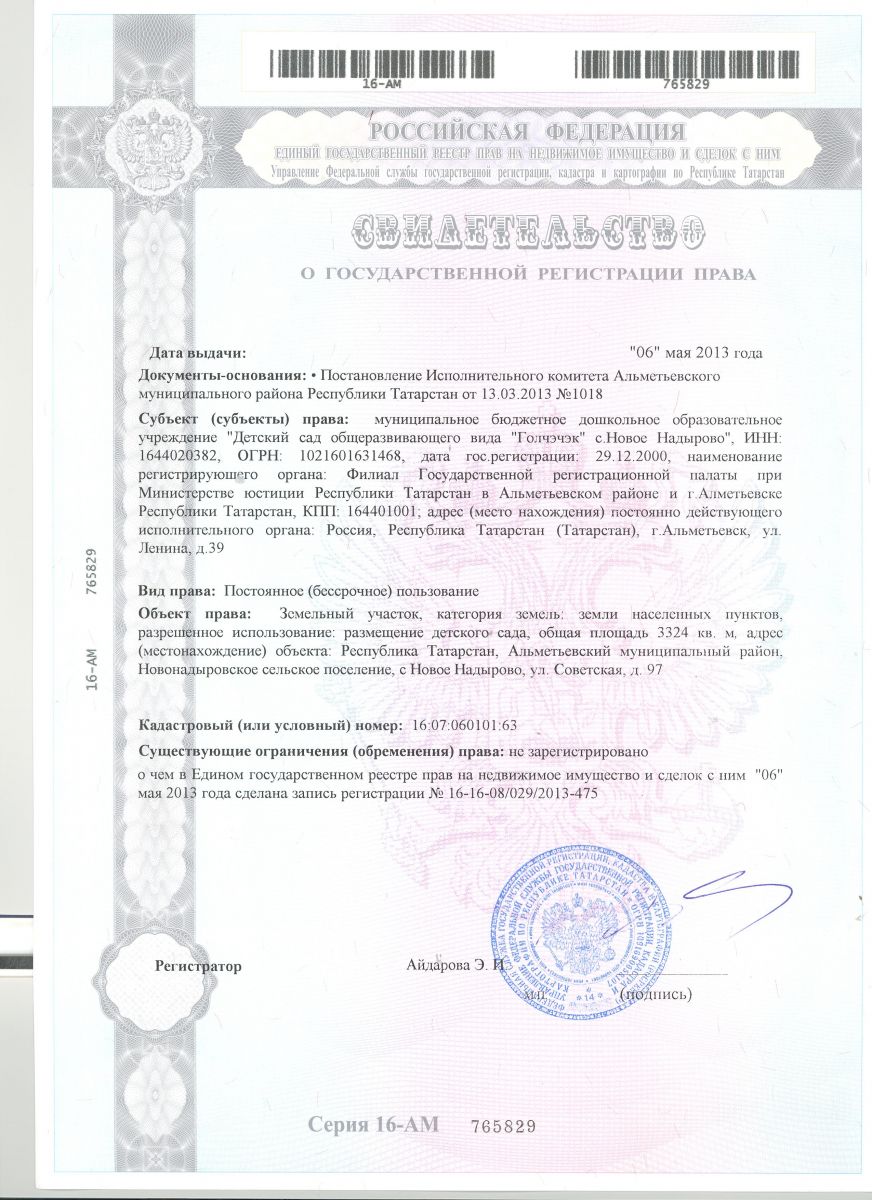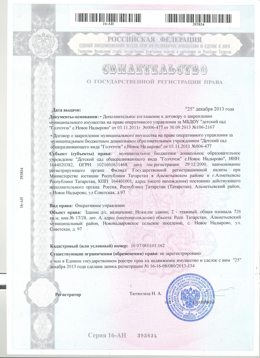 | Адрес: | 423444, Республика Татарстан, Альметьевский район, с. Новое Надырово, ул. Советская, д. 97 |