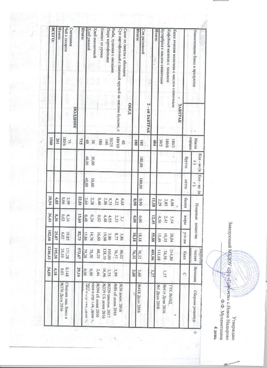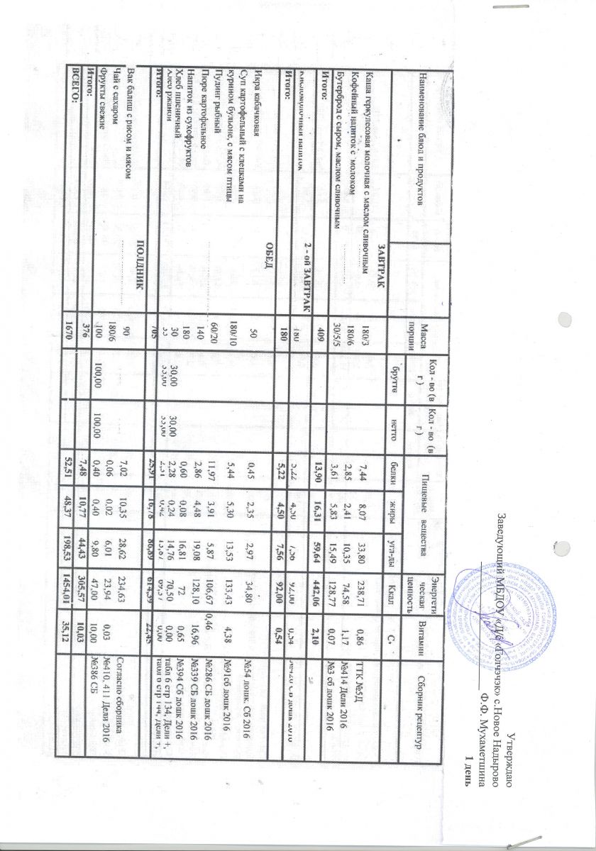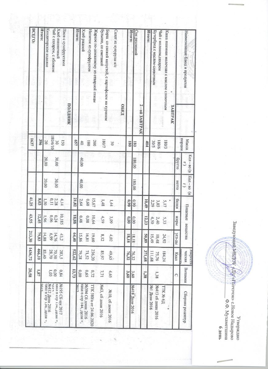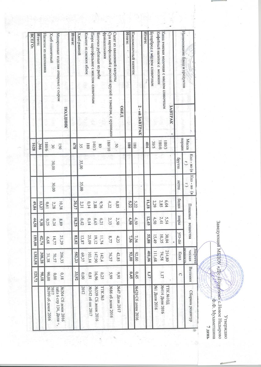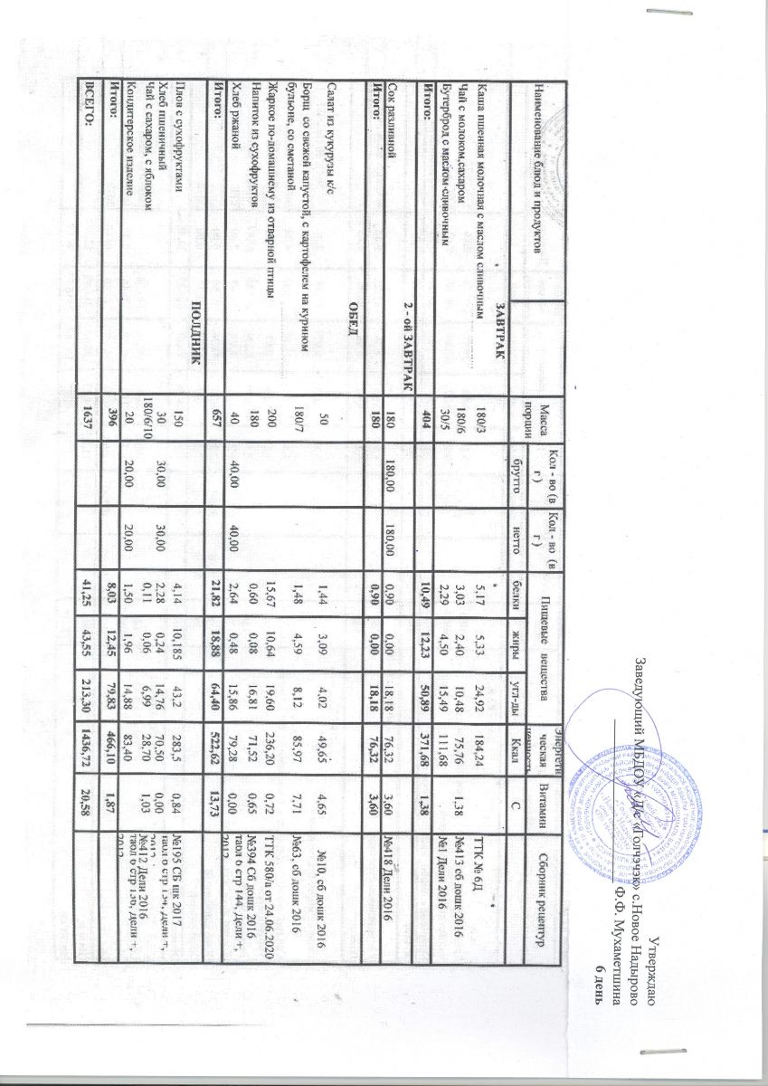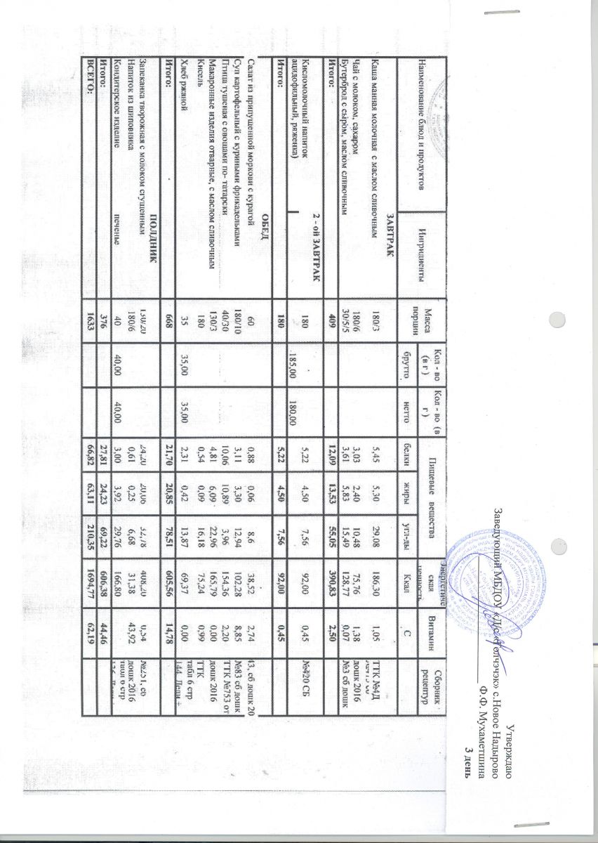 *Меню ежедневного горячего питания