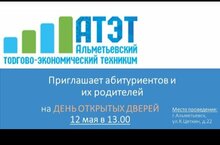 Альметьевский торгово- экономический техникум приглашает абитуриентов и их родителй на день открытых дверей 12 мая 2023 года в 13.00 часов