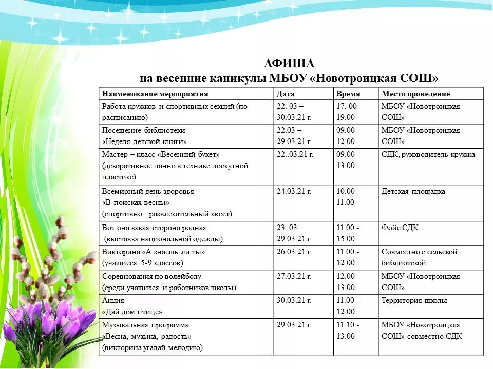 Весенние каникулы