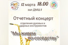 Приглашаем на отчетный концерт отделения духовых и ударных инструментов "Мы живем по-соседству", который состоится 12 марта в 18.00 в зале ДМШ №1. В концерте принимают участие преподаватели и учащиеся ДМШ. №1.