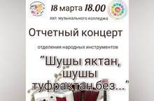 Приглашаем на отчетный концерт отделения народных инструментов "Шушы яктан, шушы туфрактан без...", приуроченный 75-летнему юбилею Р.Нагимова и году Родных языков и народного единства в РТ. Мероприятие состоится 18 марта в 18.00 в Большом зале Альметьевского музыкального колледжа. В концерте принимают участие преподаватели и учащиеся ДМШ №1.