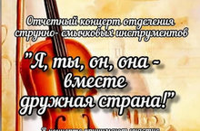 Приглашаем на отчетный концерт отделения струнно-смычковых инструментов "Я,ты, он, она- вместе дружная страна ". Концерт приурочен году родных языков и народного единства в РТ. Мероприятие состоится 14 апреля в 18.00 в малом зале ДМШ №1 (каб.305) В концерте принимают участие преподаватели и учащиеся ДМШ №1.