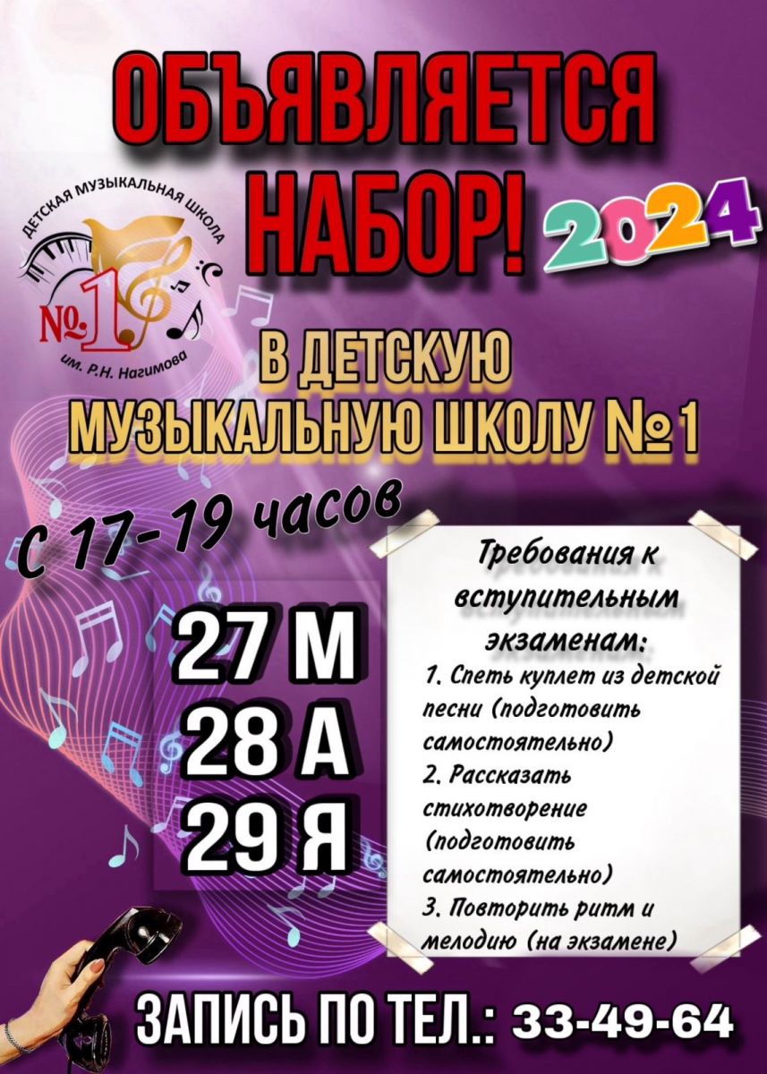 Приём в "Детскую музыкальную школу имени Раиса Нагимова" осуществляется по следующим программам: