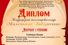 Диплом лауреата 3 степени, фортепиано. Руководитель Мусина Наталья Петровна.