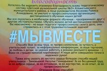 ДМШ №2, Присоединяется к общероссийской акции взаимопомощи "Мы вместе". Дни проведения праздничных мероприятий - это дни, когда мы можем поблагодарить каждого человека за помощь, проявление ответственности и сохранение самоизоляции в этот тяжелый год. Сказать спасибо всем тем, кто нас окружал и помогал: близким, учителям, мед.работникам...