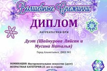 Поздравляем музыкальный дуэт наших преподавателей Мусиной Натальи Петровны и Шайнуровой Ляйсан Расимовны с победой в международном фестивале-конкурсе "Inspiration" А также благодарность Аксёнову Рамису Ахмедовичу за вклад в развитие творческого потенциала.