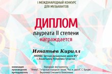 Поздравляем!!! Благодарность выражается Якушкиной Елизавете Алексеевне за талант и мастерство, искреннюю преданность своему делу и личный вклад в проведении I Международного конкурса для музыкантов "Виртуозы"