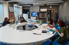 Зам. директора по УВР Агафонова А.Р. провела ознакомительную экскурсию и познакомила всех присутствующих с разнообразным миром творчества. На мастер-классе по рисованию ребята узнали о художественных техниках и приёмах, познакомились с художественными инструментами. Для мам была организована иллюстрированная мини-лекция «Святое семейство», которая стала местом новых открытий. Радостные возгласы восхищения, радуга детских улыбок заполнили пространство современной и уютной художественной школы. -