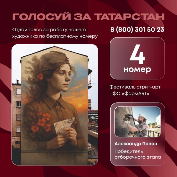 Среди жителей 14 регионов Приволжского округа проходит народное голосование за лучший мурал в рамках VI сезона фестиваля уличного искусства «ФормАРТ». В конкурсе участвуют молодые художники-граффитисты в возрасте от 18 до 35 лет из всех 14 регионов Приволжского округа.