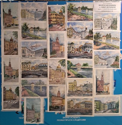 В школе проходит выставка работ учащихся 3 и 4 классов по итогам пленэра в г. Санкт-Петербург (преп. Сандревская Н.К., Симонова Е.В).