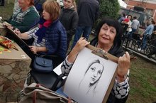 В фойе школы ДХШ №1 оформили выставку рисунков, посвященных "Дню пожилых людей"