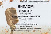 Хореографический коллектив "Стиль детства" на международном конкурсе-фестивале "Звездный час" заняли Высшую награду "Гран-при"