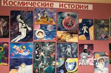 Дети рисуют истории космоса, советской и российской космонавтики. На выстаке работы обучающихся преподавателя Решетниковой И.В и Чадаевой С.Ю.
