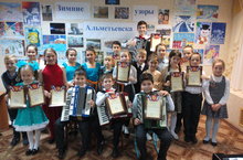 07.12.2017. В нашей школе состоялся ежегодный конкурс "Зимние узоры Альметьевска" (ответственная преподаватель Исхакова Л.А.) и впервые прошел фотоконкурс "Мы любим Альметьевск!". Они были посвящены 65 - летию города. На музыкальном отделении приняли участие 26 учащихся. Лауреаты в младшей группе : I место - Камалов Фаяз 2 класс, II место - Камалов Фаиль 2 класс, Дуэт аккордеонистов Тураев Тимофей, Мифтахов Ильнар 2 класс (преподаватель Исхакова Л.А.), III место - Нургалиева Розалина 1 класс (Фатыхова Л.Н.). Лауреаты в старшей группе: I место - Дуэт баянистов "Два Камиля" Билалов Камиль, Юнусов Камиль 4 класс, III место - Хурматуллин Салават 4 класс( преподаватель Исхакова Л.А.) Ильясова Аделина 3 класс (преподаватель Муравьева Т.С.), II место - Аргодяева Арина (преподаватель Максютина Н.И.), на художественном отделении приняли участие 20 учащихся. Всем участникам конкурса были вручены сладкие призы.Поздравляем! Желаем творческих успехов!