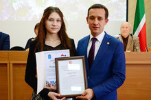6 октября состоялась сессия Совета Альметьевского муниципального района и городского Совета, на которой Глава района и города Хайруллин А.Р. наградил нашу ученицу Бочкарёву Полину (преп.Годунова Р.М.) сертификатом на 5 тыс. рублей и прибывшим из Москвы призом - плеером. Полина стала призёром Всероссийского конкурса детского рисунка о космосе. Поздравляем и желаем дальнейших успехов!