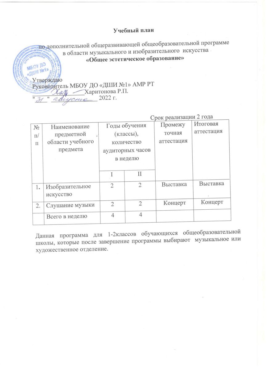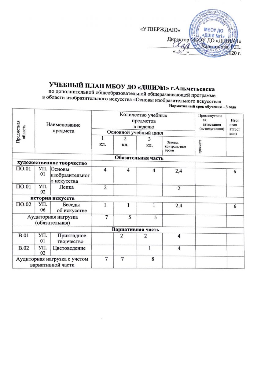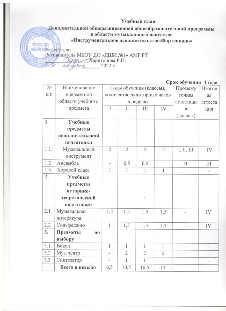 Учебный план МБОУ ДО "ДШИ №1" ДООП "Вокальное исполнительство" 4 года Учебный план МБОУ ДО "ДШИ №1" ДООП "Вокальное исполнительство" 5 лет