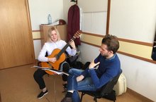 11 апреля 2019 года в стенах Альметьевского музыкального колледжа был настоящий «гитарный бум». Преподаватели Новосибирского музыкального колледжа им. А. Ф. Мурова Кузьма Владимирович Филимонов и Михаил Дмитриевич Ракин в первой половине дня провели очень насыщенные мастер-классы для учащихся ДМШ, ДШИ и студентов музыкального колледжа. Со всего юго-востока Республики Татарстан, городов Заинска, Черемшана, Альметьевска, приехали желающие послушать их методические рекомендации. Мастер-классы были очень увлекательными и свидетельствовали о богатом педагогическом опыте, который сложился благодаря активной исполнительская практике М.Ракина и К.Филимонова - концертирующих исполнителей, лауреатов Всероссийских и международных конкурсов. К.Филимонов и М. Ракин привезли большое количество литературы их наставника и первого учителя Юрия Кузина. В 18.00 ч. итогом методического дня стал блестящий концерт дуэта “SiberiaNueva», который образовался между коллегами Новосибирского колледжа К.Филимоновым и М.Ракиным в связи с совместной преподавательской деятельностью. Открыли концерт гитаристы классическими сонатами, которые перенесли слушателей в эпоху 17-18 вв. салонных вечеров и высокой придворной культуры. Затем они решили слегка приободрить публику Испанским танцем Мануэля де Фальи из оперы «Жизнь коротка». В продолжении программы мы услышали цикл из трёх бразильских сцен Сержио Ассада с яркими ритмами и зажигательными темпами. Подарком музыкантов из Новосибирска стало исполнение произведения их земляка Константина Васильева. Композиция, под названием «Видение», была очень близка слушателям, т. к. основным её тематическим материалом стала русская народная «Ой, то не вечер». Затем, для самого юного слушателя, которому только исполнился 1 годик, они решили исполнить произведение итальянского композитора Анфосси Поскуаля, которое дословно переводилось, как «Дитя». Характер музыки и переданное настроение абсолютно соответствовали названию. Звучало много современной музыки. Концерт был очень многогранным и интересным....