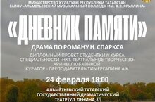 Приглашаем вас 24 февраля в 18:00 на дипломный спектакль студентки 4 курса специальности «НХТ. Театральное творчество» Арины Любавиной.Вас ждёт трогательная история по роману Н.Спаркса «Дневник памяти»- история о верности, силе чувств и выборе, который меняет жизнь.