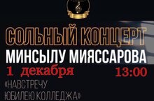 Приглашаем на сольный концерт студентки 3 курса специальности "Музыкальное искусство эстрады.Эстрадное пение" Минсылу Мияссаровой (руководитель и преподаватель Сафина Айгуль Альфисовна), который состоится 1 декабря в 13.00 в малом зале нашего колледжа.