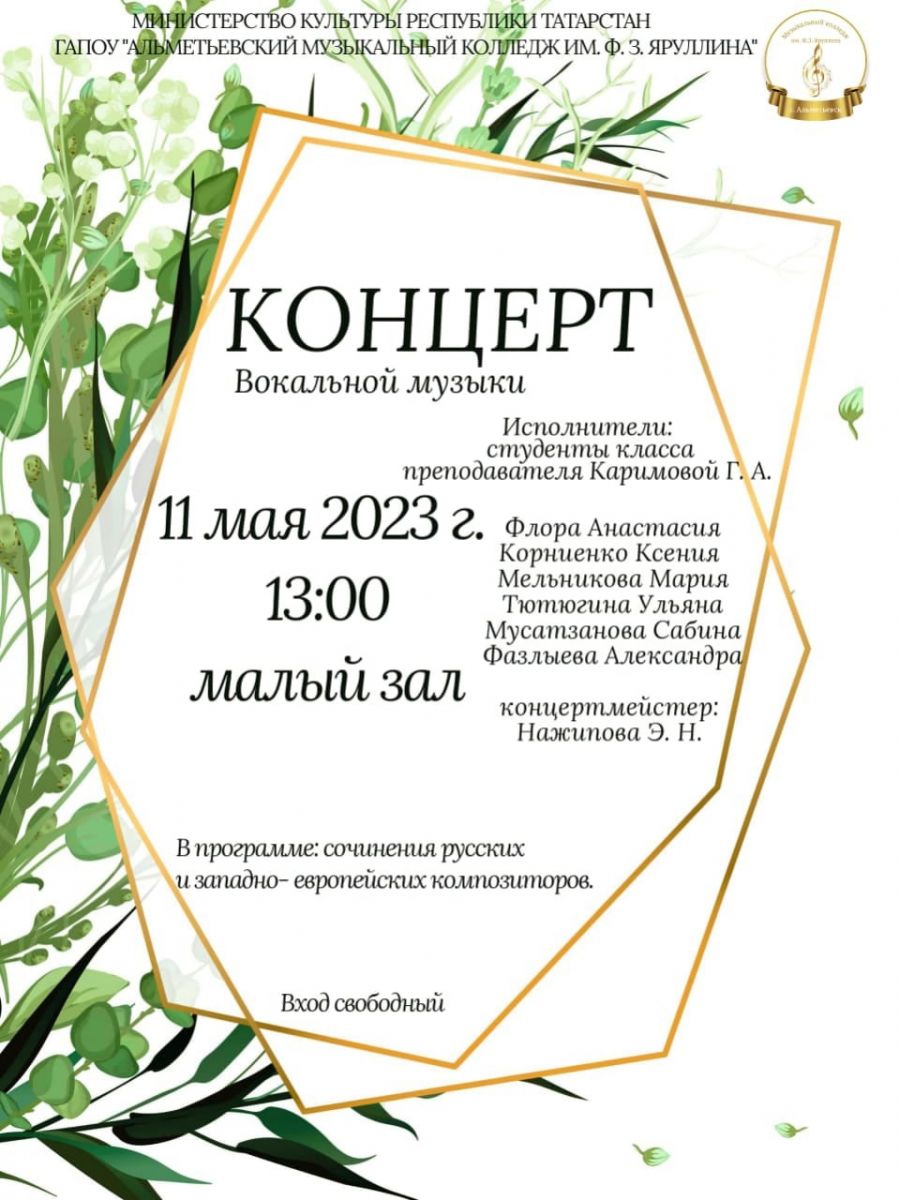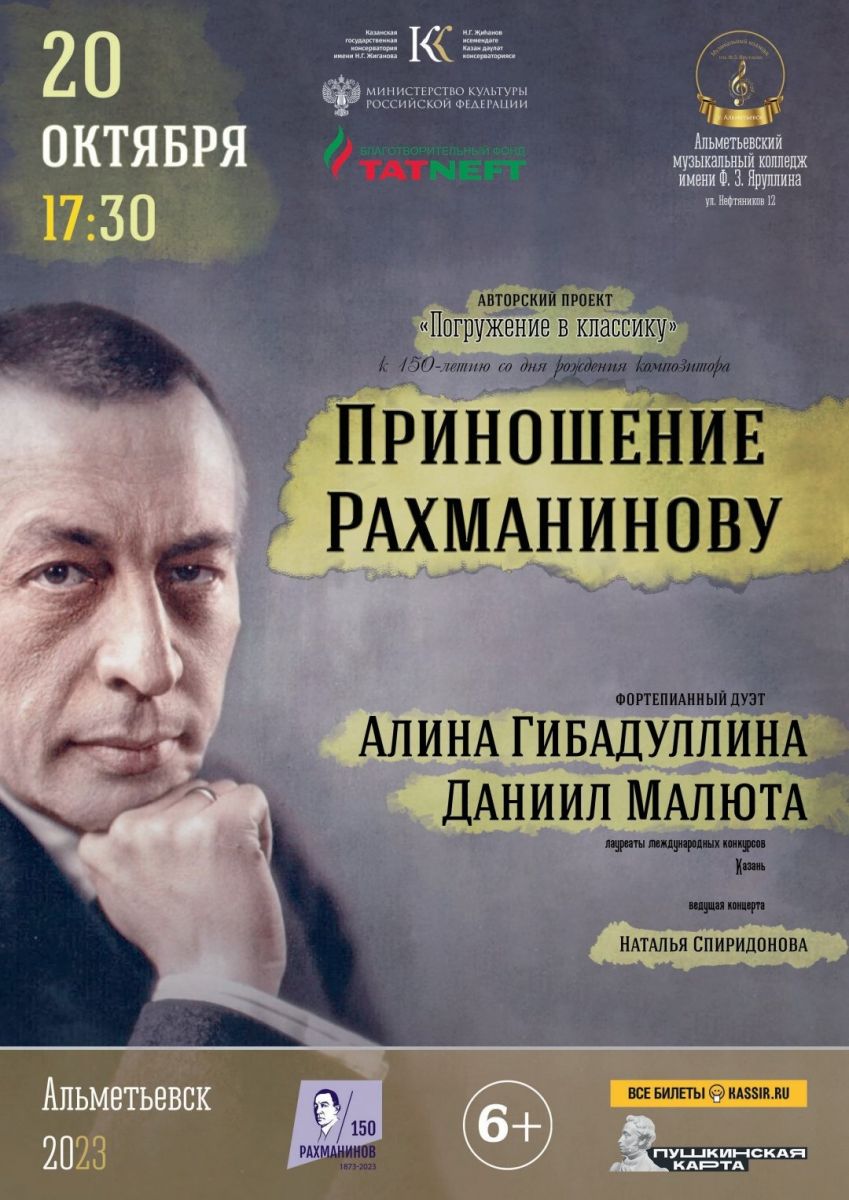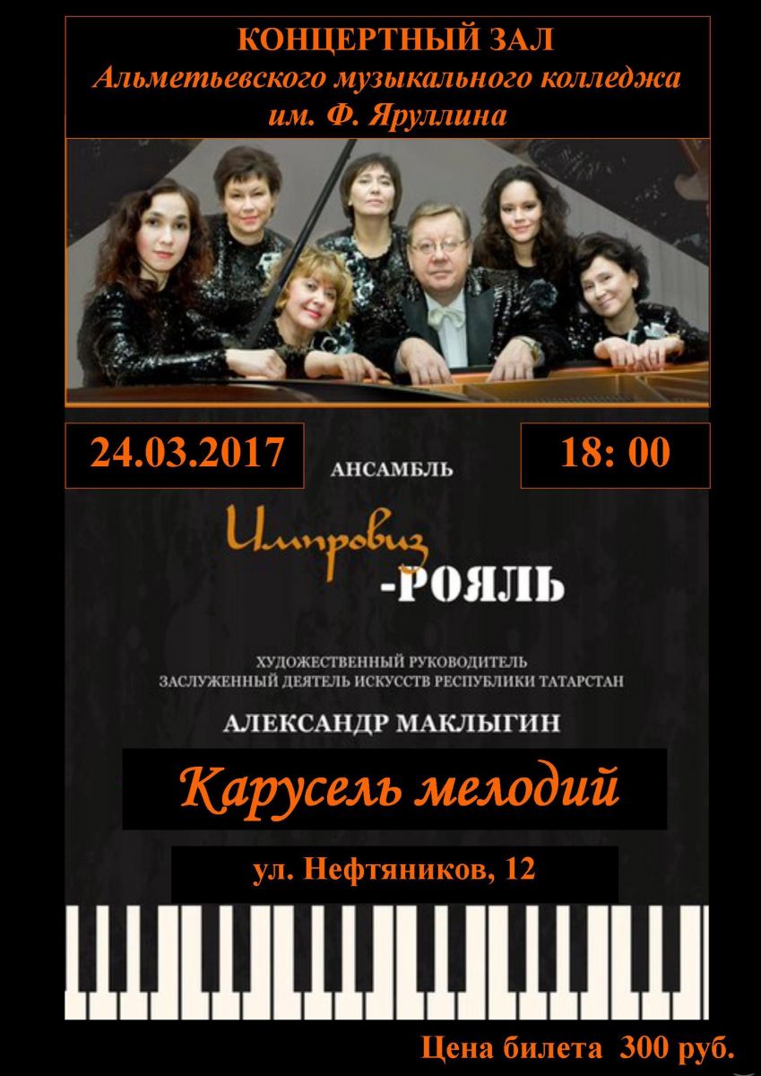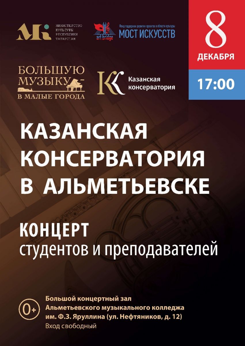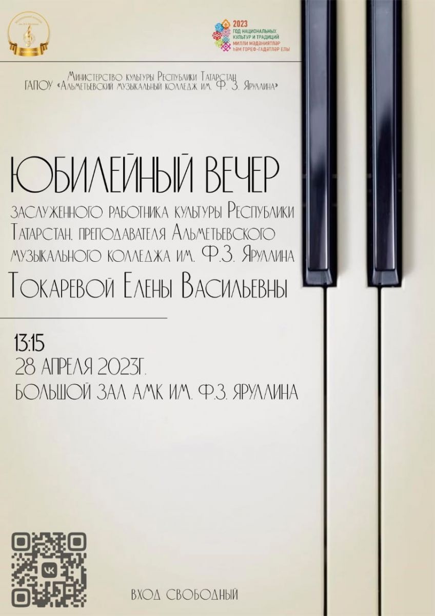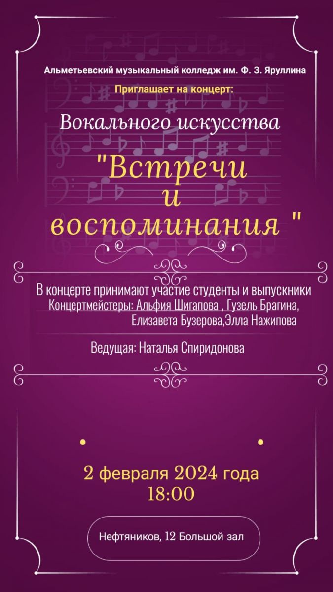 23 Марта 2024 г. в 14:00 - Юбилейный концерт Альметьевского музыкального колледжа им.Ф.З.Яруллина «Учитель-ученик: к душе-душа…» АФИША БИЛЕТЫ