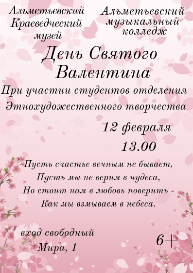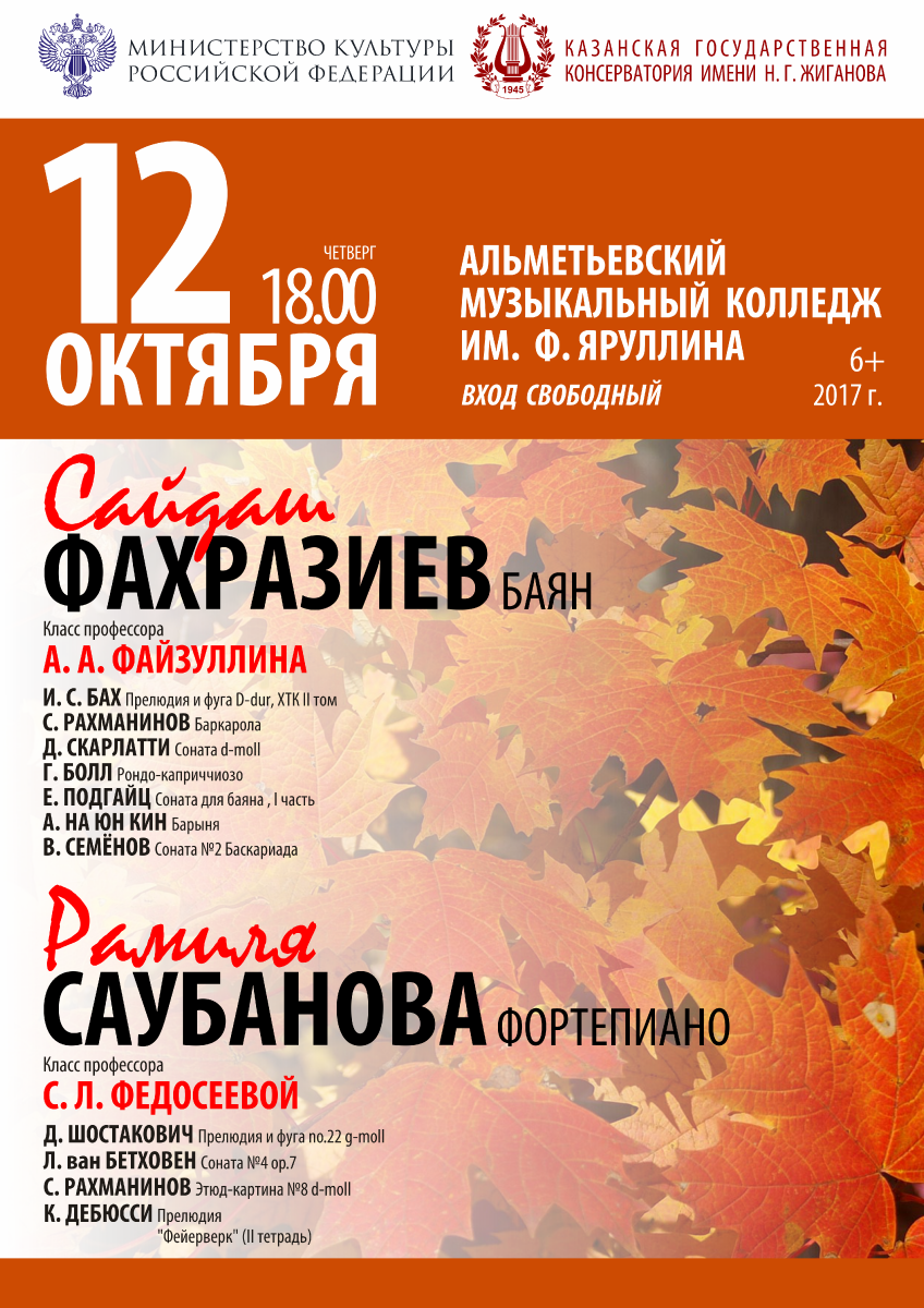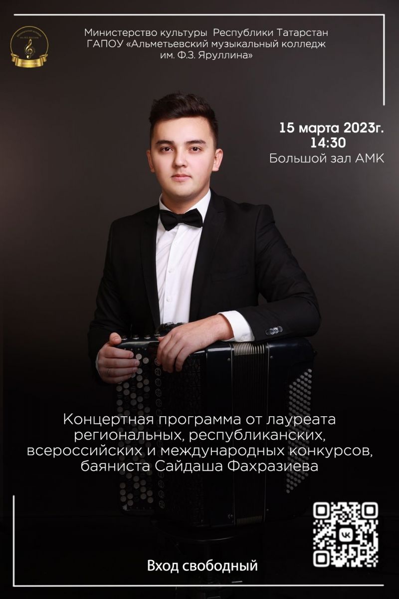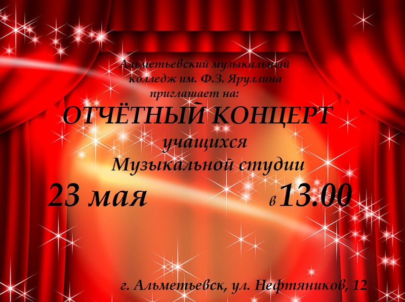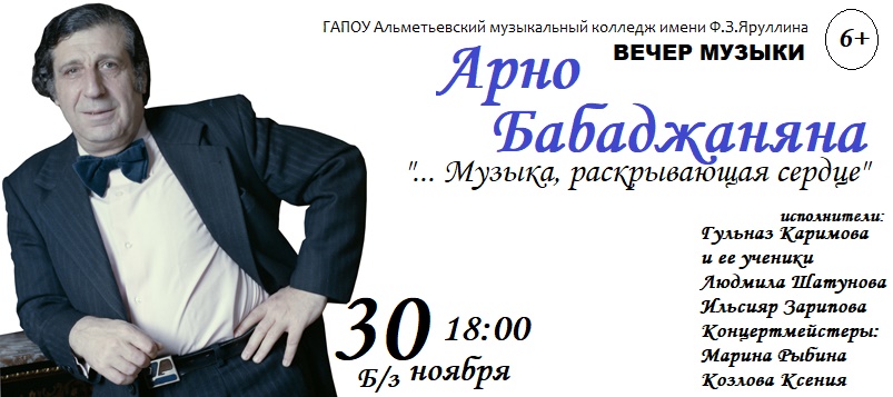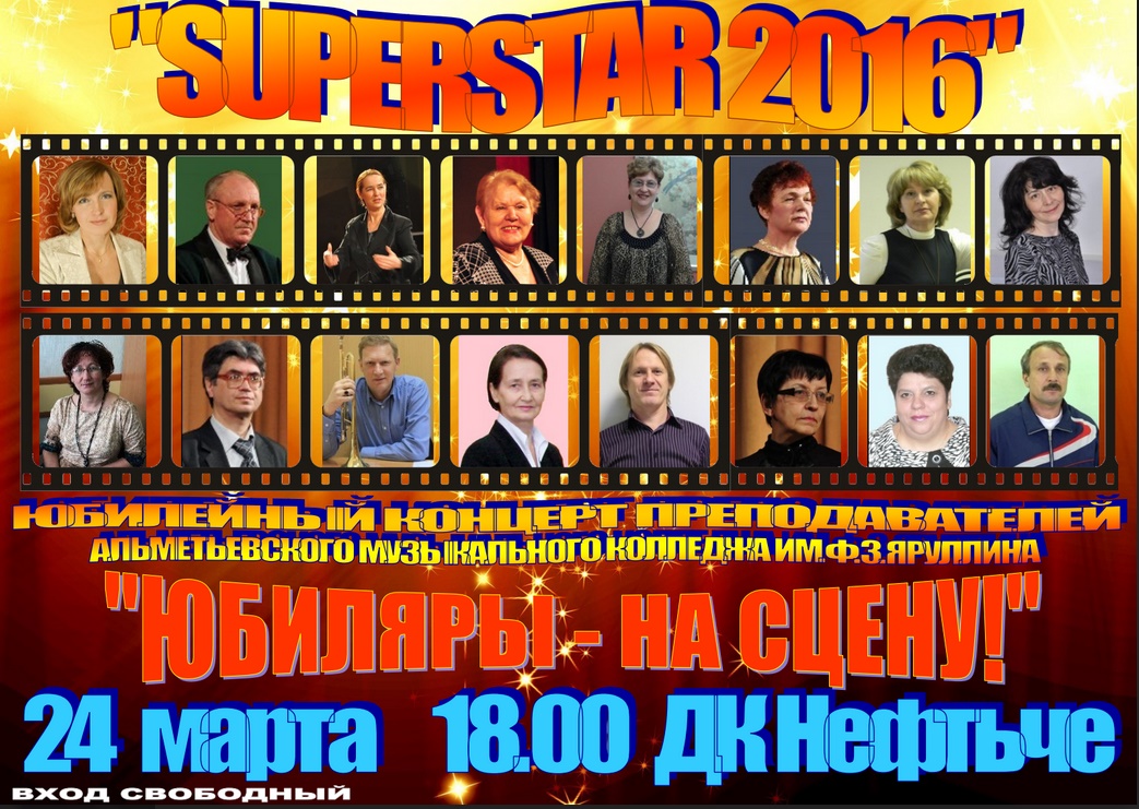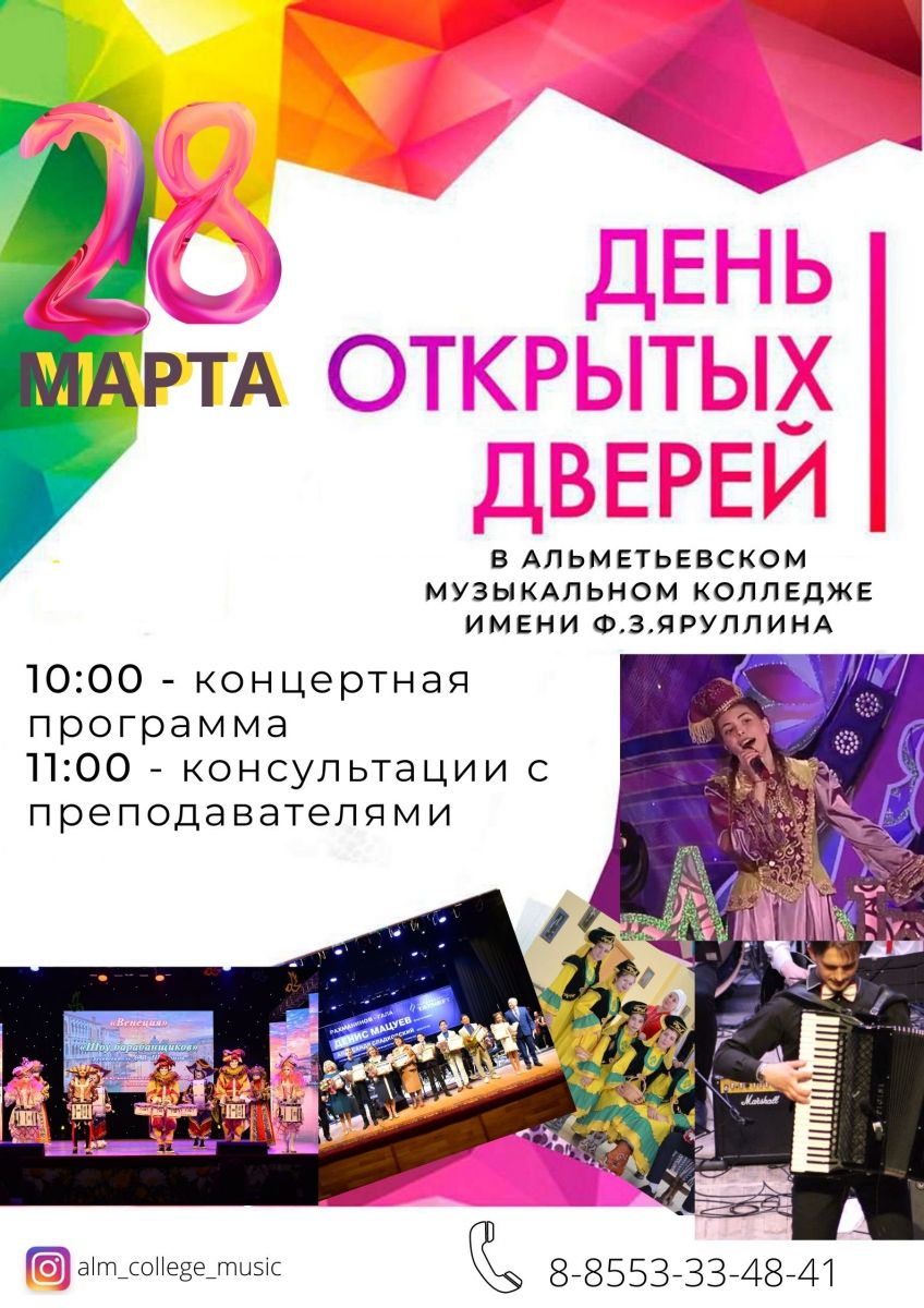 23 Марта 2024 г. в 14:00 - Юбилейный концерт Альметьевского музыкального колледжа им.Ф.З.Яруллина «Учитель-ученик: к душе-душа…» АФИША БИЛЕТЫ