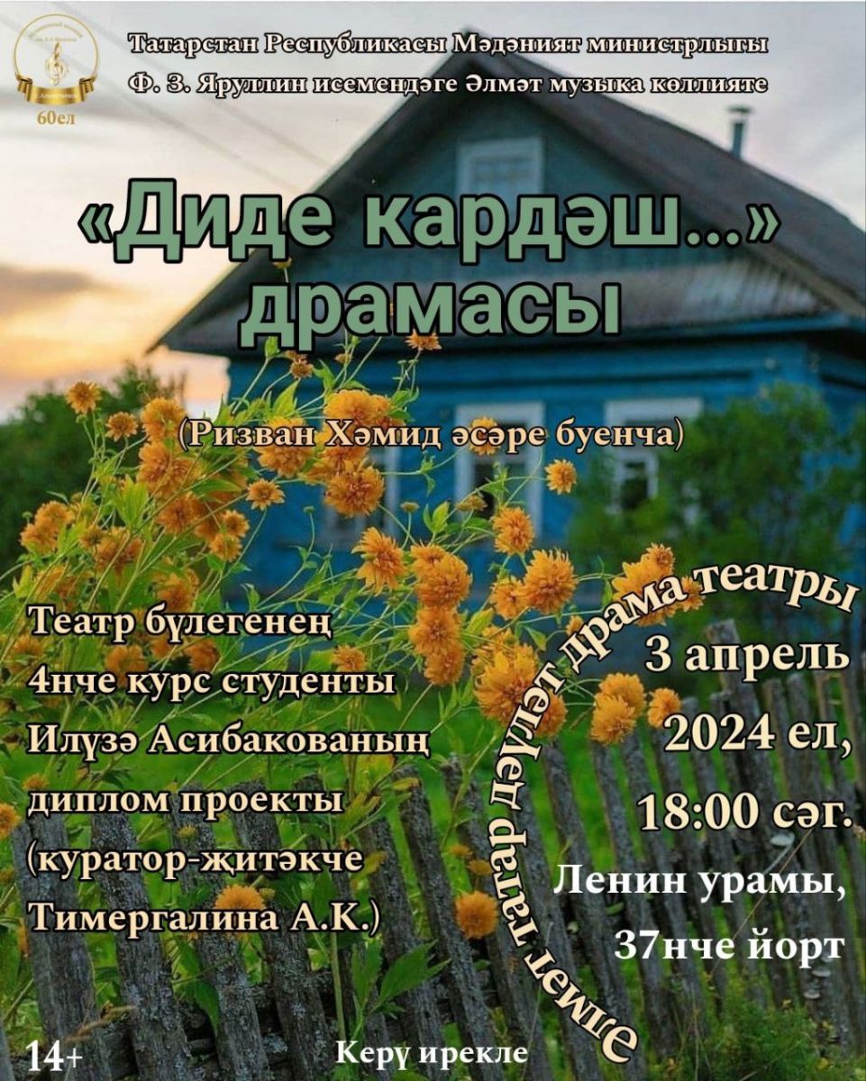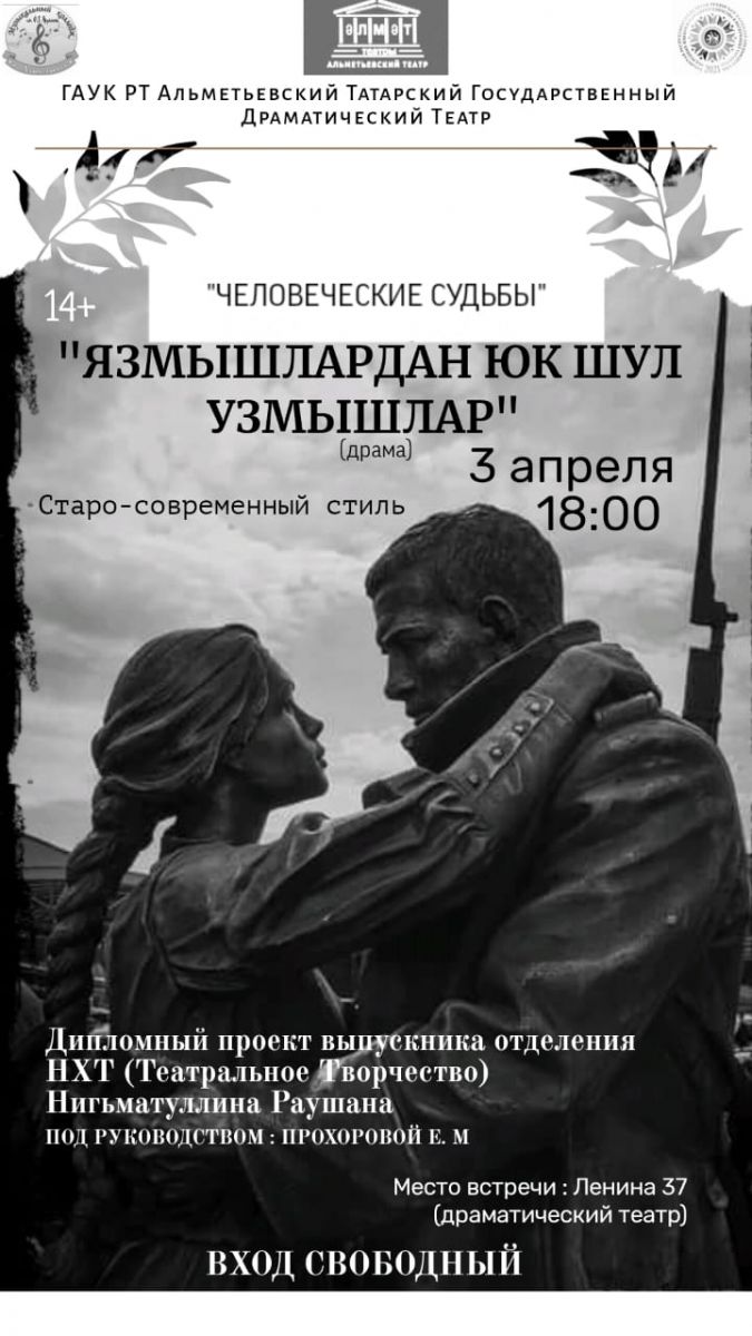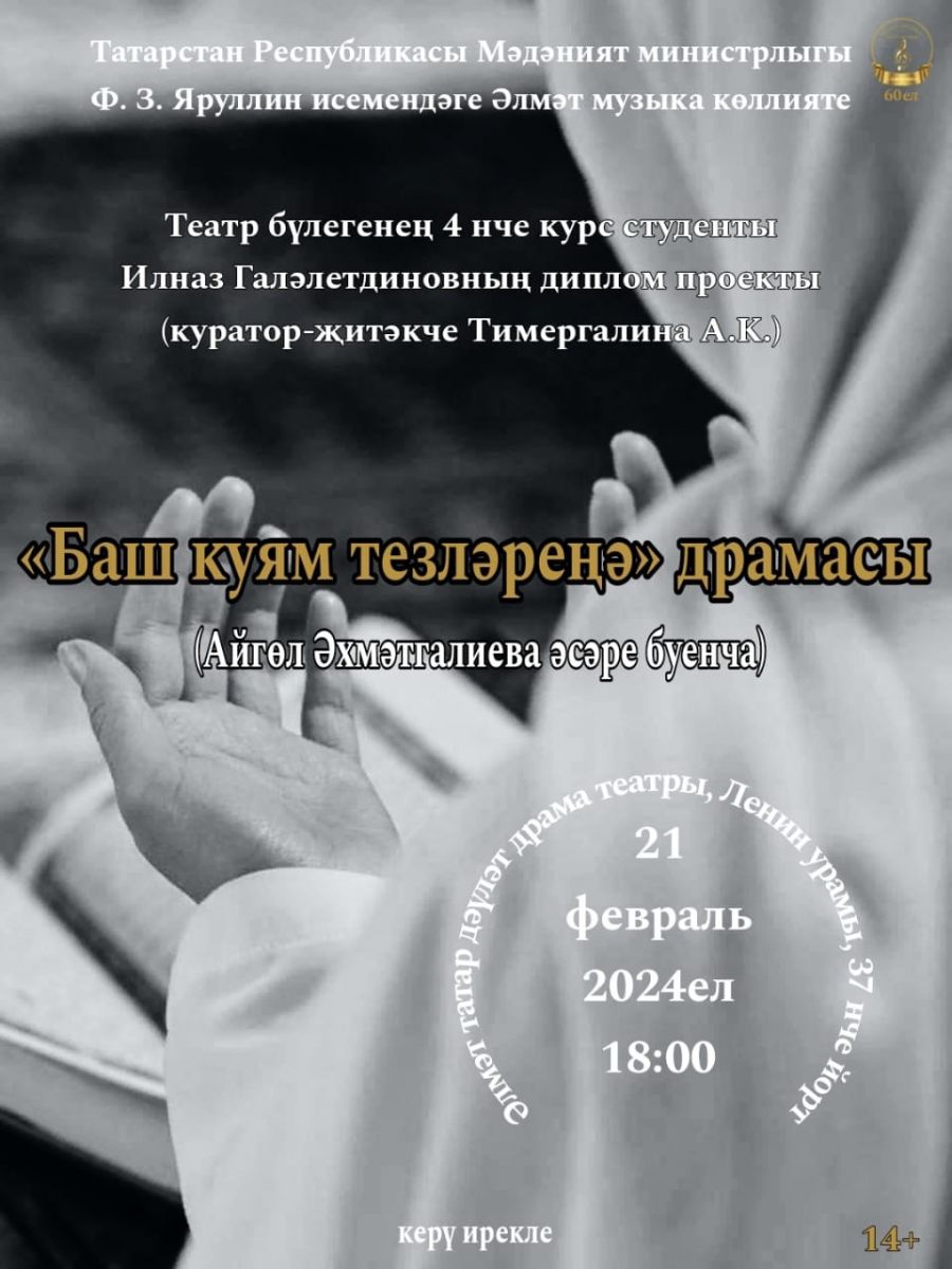 21 Февраля 2024 г. в 18:00 - Показ дипломного спектакля "Баш куям тезләреңә" АФИША