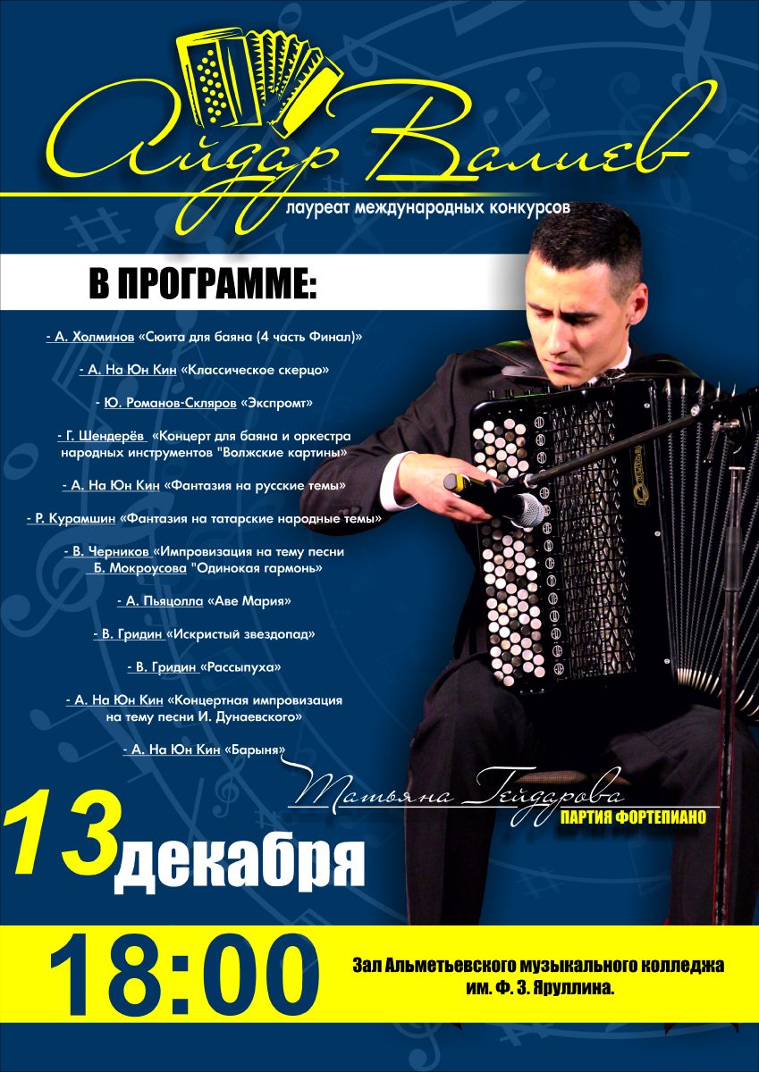 13.12.16г. Концерт известного баяниста Айдара Валиева Афиша