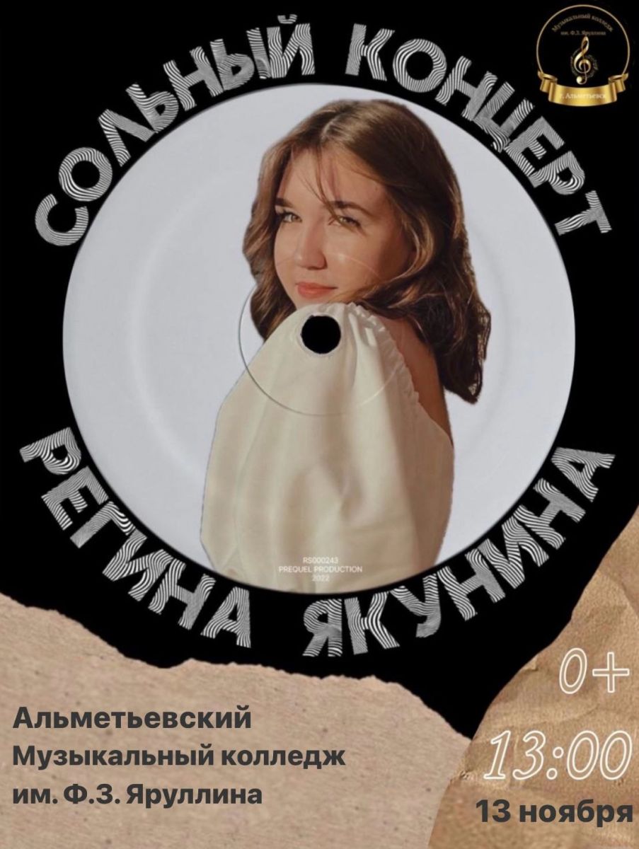 13 Ноября 2023 г. в 13:00 - Сольный концерт студентки специальности "Музыкальное искусство эстрады. Эстрадное пение" Регины Якуниной АФИША
