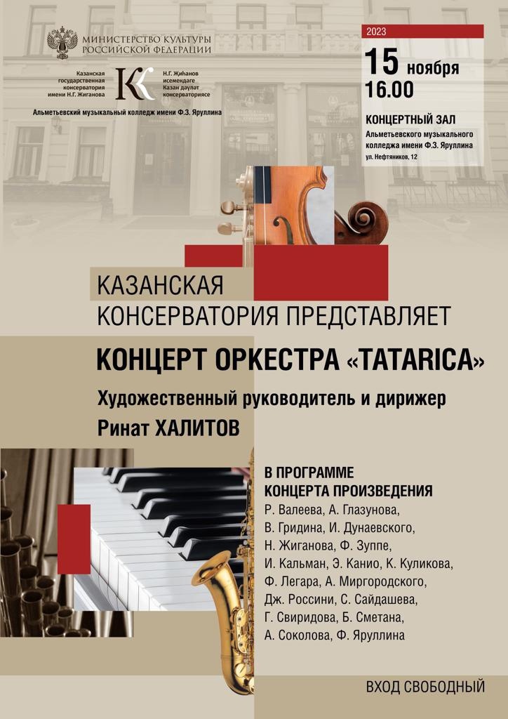 15 Ноября 2023 г. в 16:00 - Концерт оркестра "Tatarica" АФИША