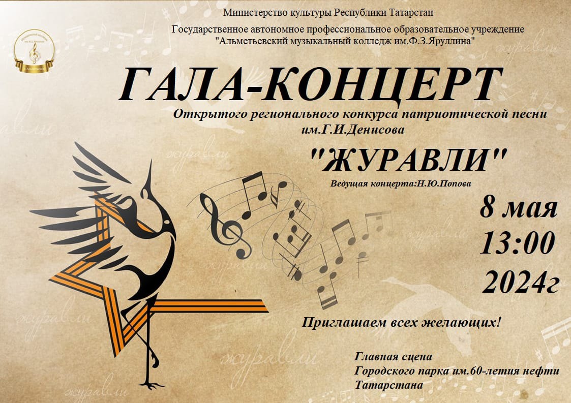 8 Мая 2024 г. в 13:00 - Гала-концерт II открытого регионального конкурса патриотической песни «Журавли» АФИША